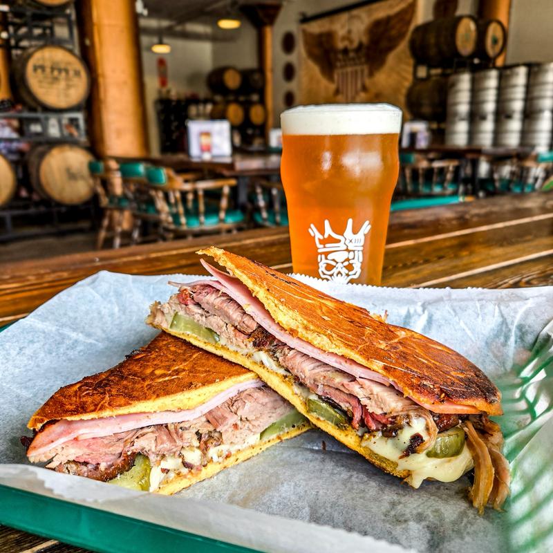House smoked pulled pork, sliced ham, Swiss cheese, Carolina gold bbq sauce, Pickles, all on Cuban bread